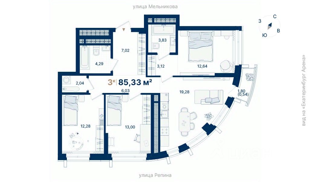 Дома расположены на стрелке улиц Репина и Крауля, рядом со стадионом ''Екатеринбург Арена''. Здесь уже есть все необходимое для жизни: сады, школы, поликлиники и магазины.