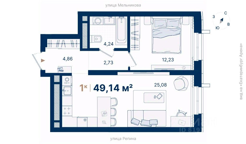 продам 1-к, Репина, 13п стр.12 687 825 ₽