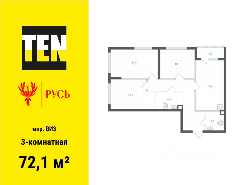 Общая площадь72,1 м2