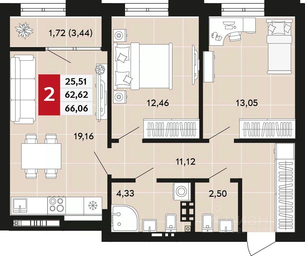 Общая площадь66,06 м2