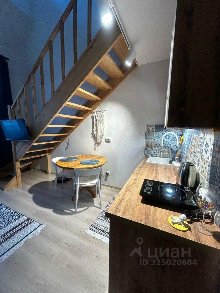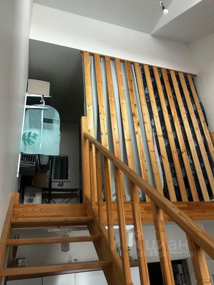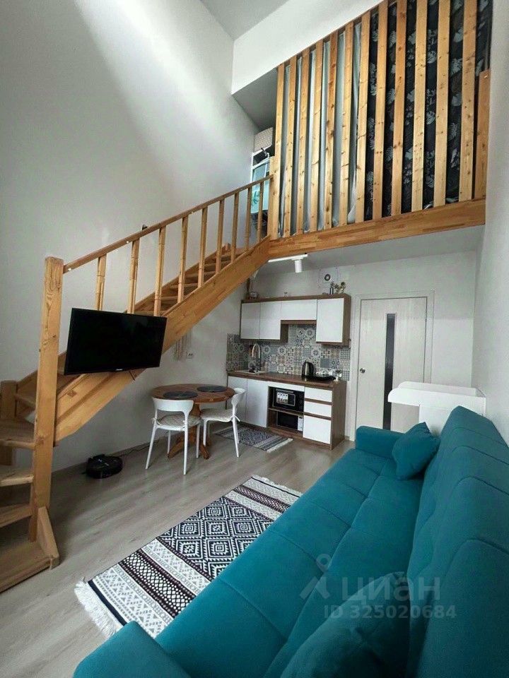 В квартире выполнен хороший ремонт, у входа сразу расположен просторный санузел, далее кухня - гостиная со вторым светом и зоной отдыха, вверх по лестнице расположена спальная комната.