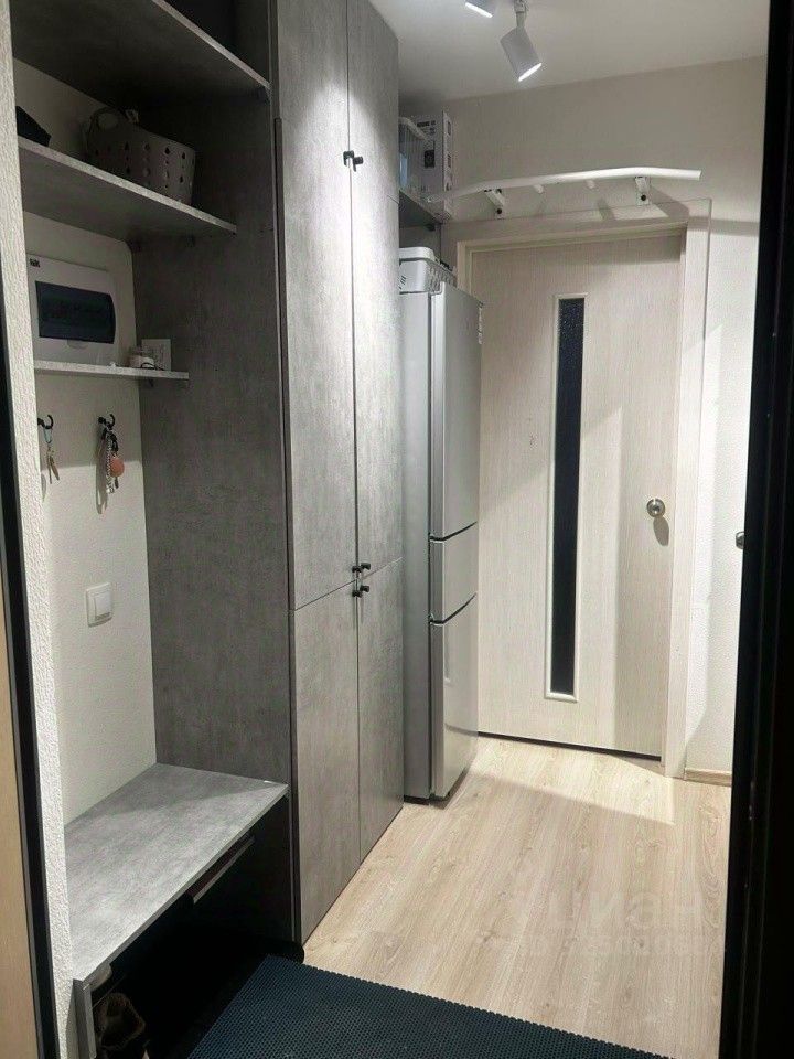 В квартире готовы оставить кухонный гарнитур, холодильник, встроенный шкаф в прихожей, стиральную машину, диван.