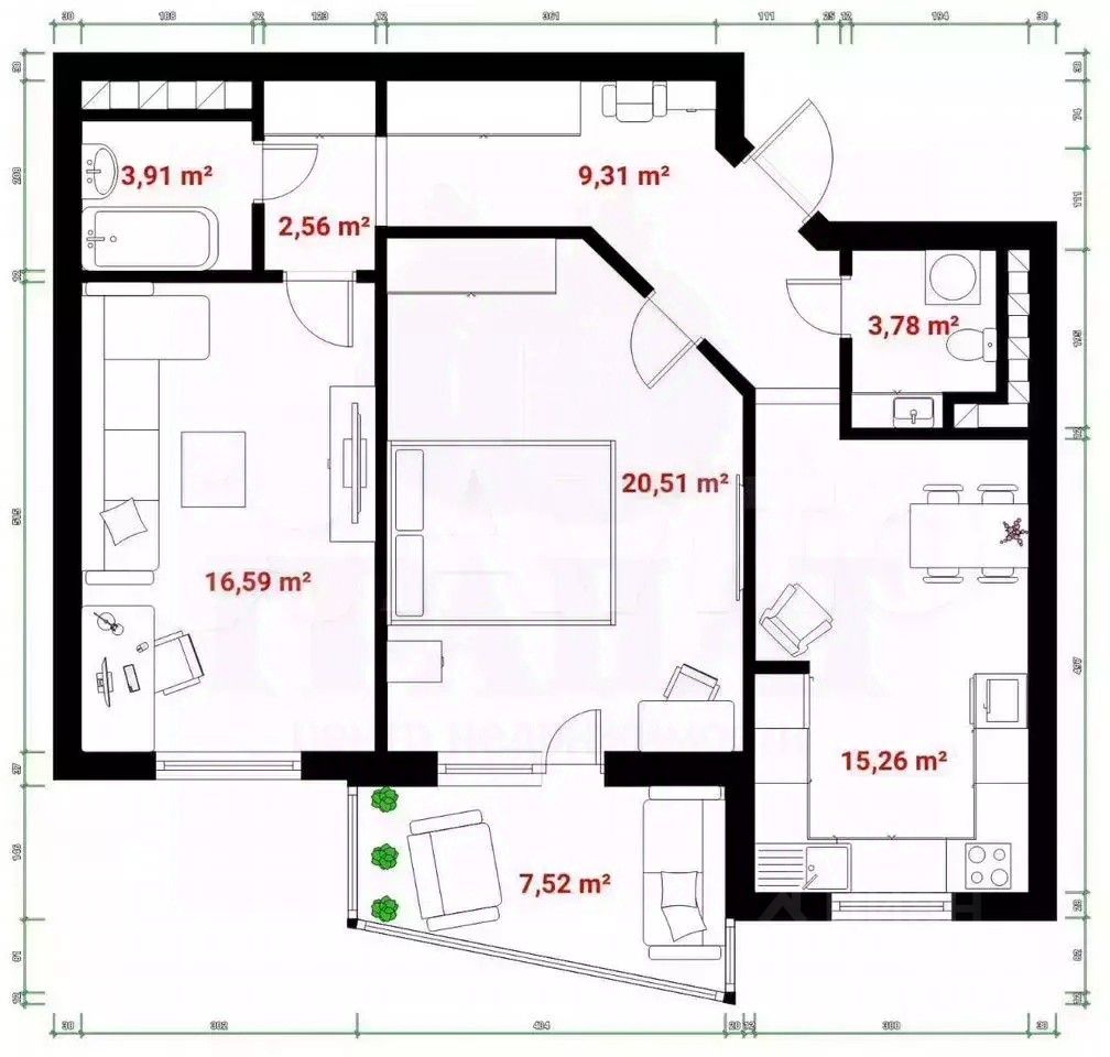 Состояние: Отличное, квартира готова к проживанию. Возможны любые дизайнерские решения.