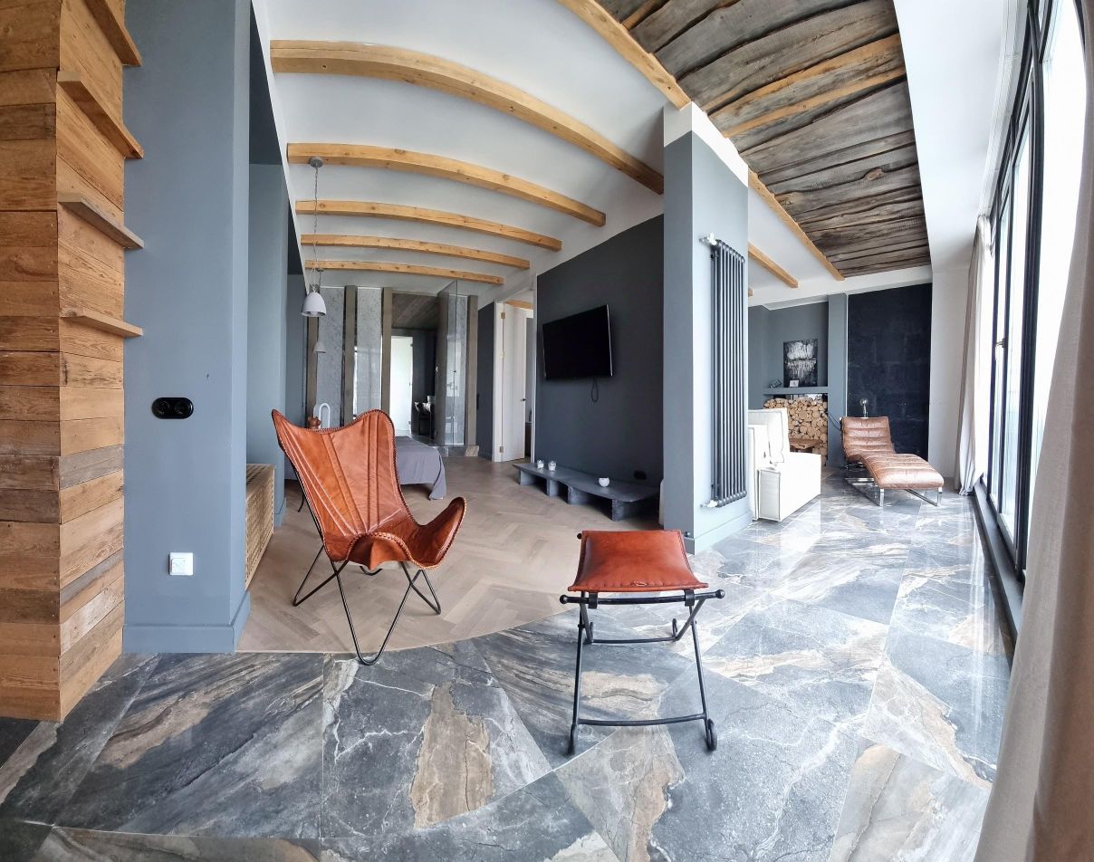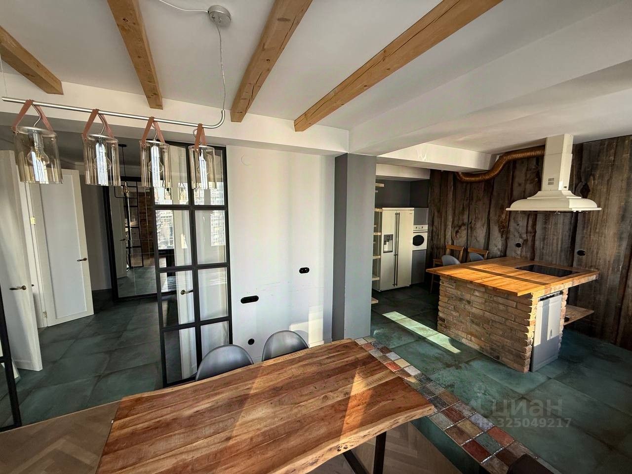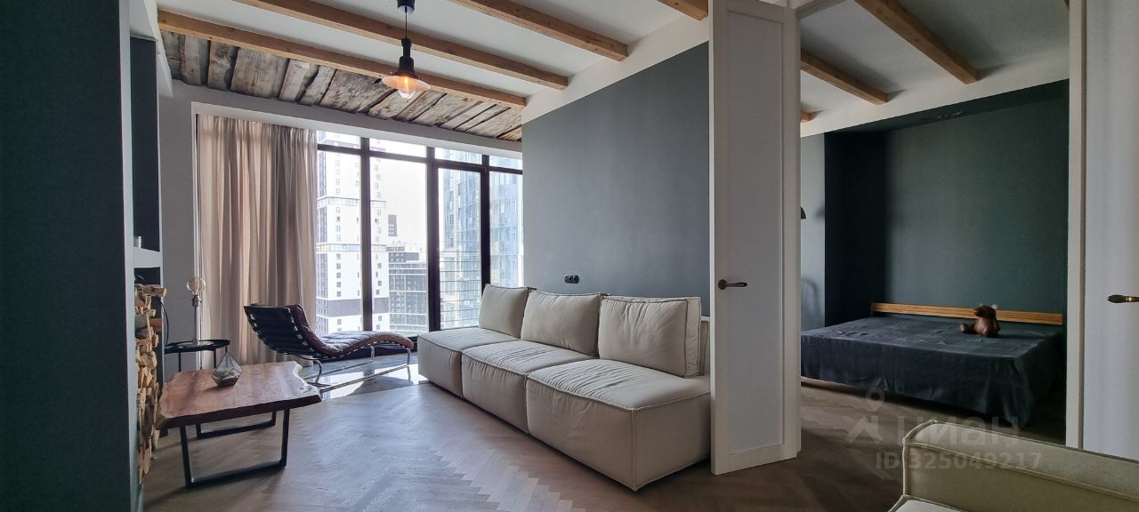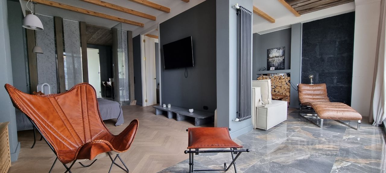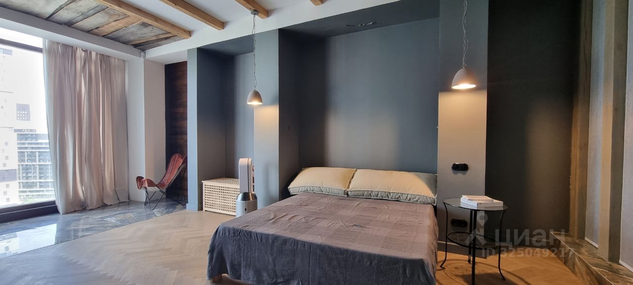 Панорамные окна на две стороны много света благодаря двойной инсоляции. Гостиная с мягкими велюровыми диванами, бетонными элементами и стильной обстановкой. Кухня с техникой ТОП-уровня (SMEG, KUPPERSBERG, LG, BORK), островом и эргономичными обеденными зонами. Спальня с лаунж-зоной у окна, аудиосистемой и уникальными элементами.