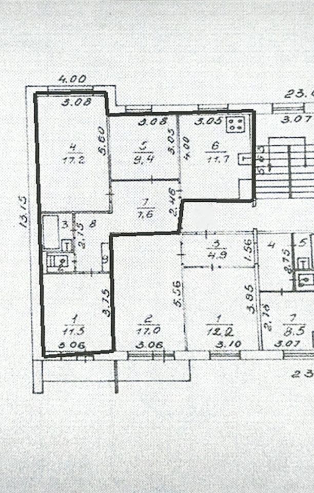 В квартире просторная кухня 11,7 кв.м., комнаты 17,2 кв.м., 9,4 кв.м., 11,3 кв.м. , сан.узел раздельный, широкая лоджия.
