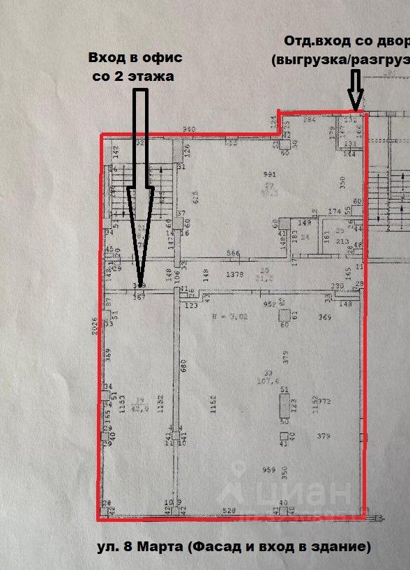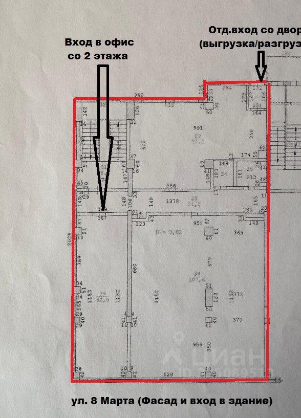 Помещение расположено на 2-ом этаже с окнами ( фасадом) на улицу 8 Марта.