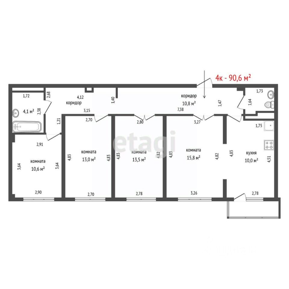 продам 4-к, Чкалова, 24010 100 000 ₽