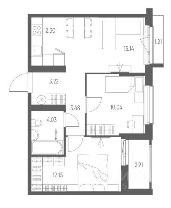 Большая и удобная кухня- гостиная правильной формы с отличным зонированием, в прихожей большая ниша под гардеробную.