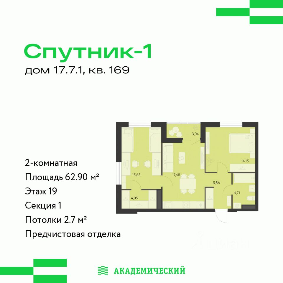 продам 2-к, Академика Ландау, 17.7.1 стр.9 076 062 ₽