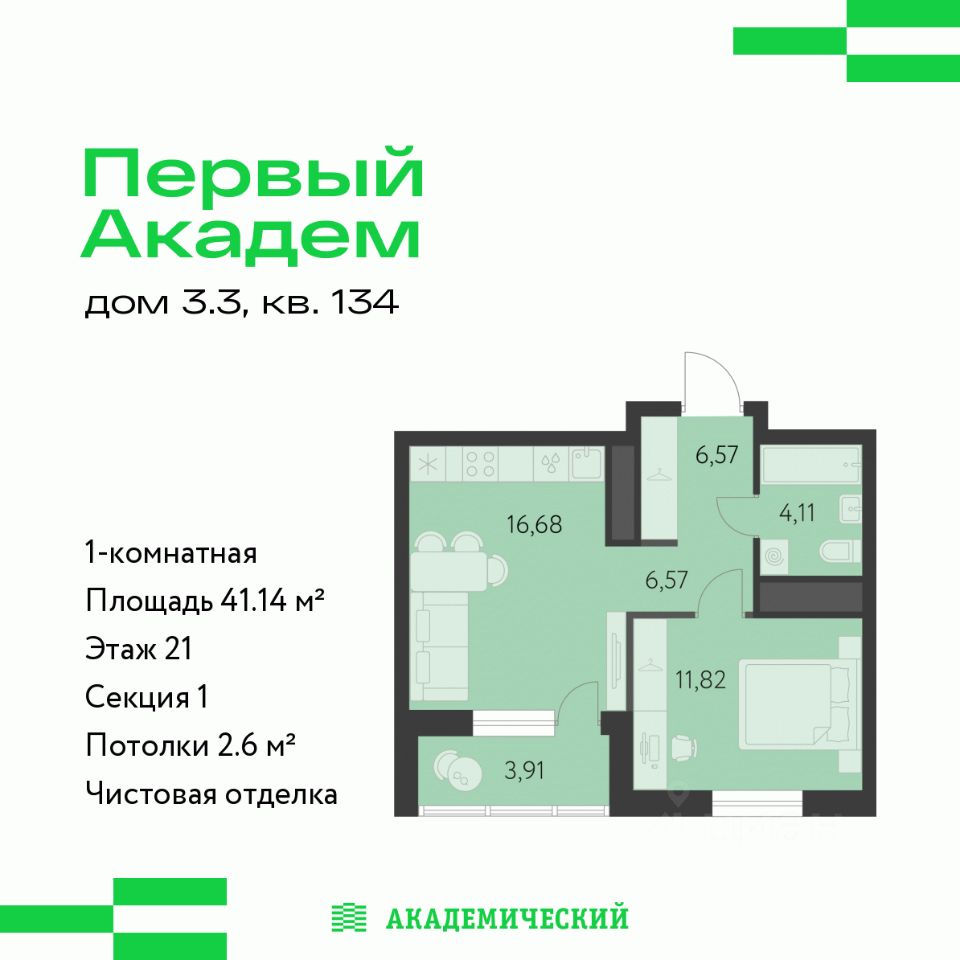 продам 1-к, Краснолесья, 3.3 стр.7 596 960 ₽