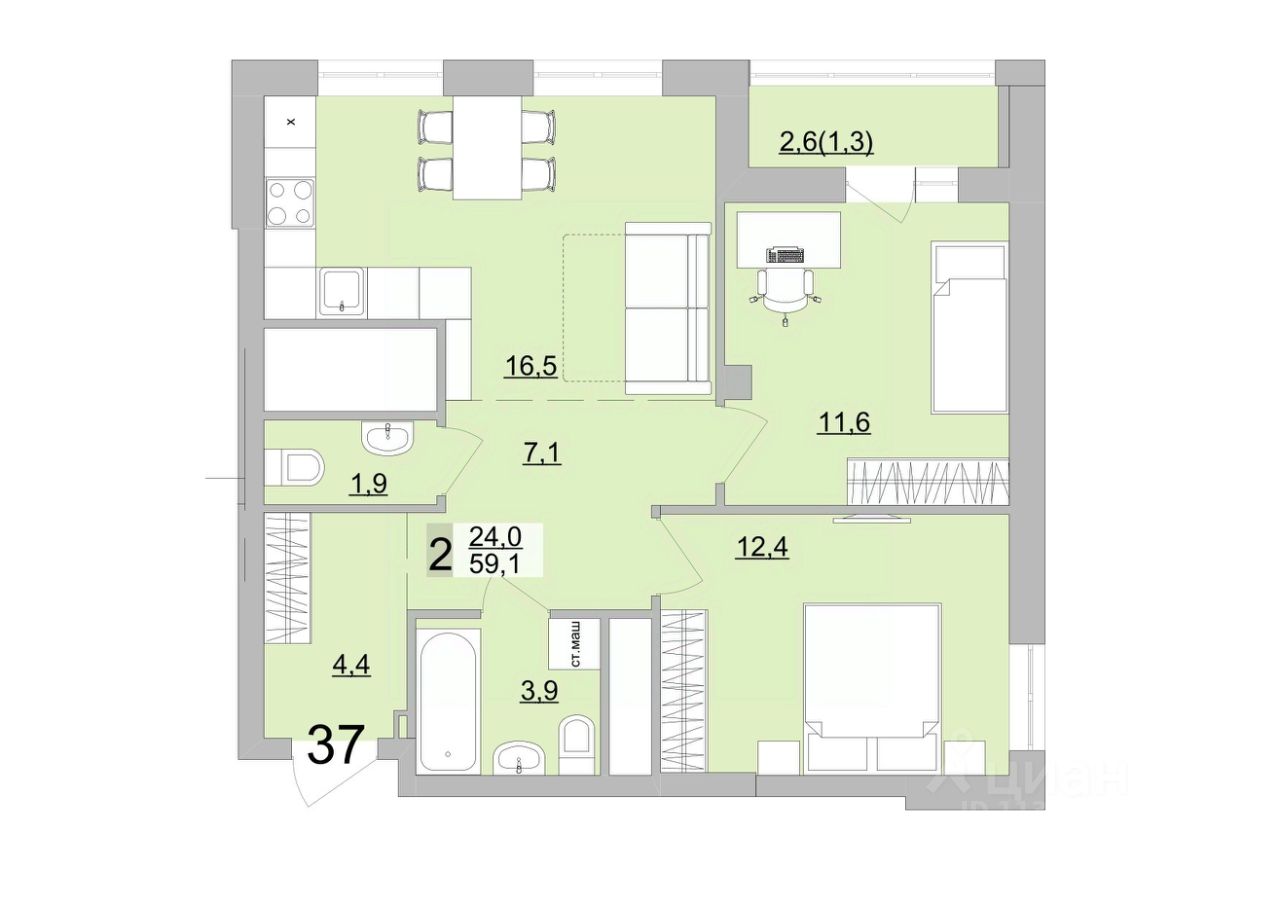 Общая площадь60,4 м2