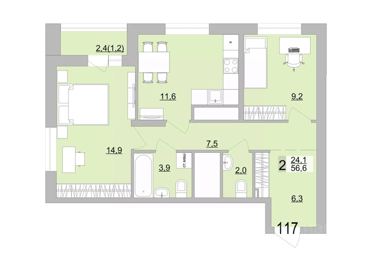 Жилая площадь24,1 м2