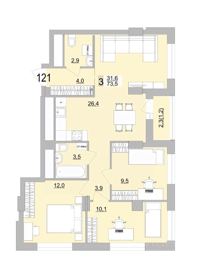 Общая площадь74,65 м2
