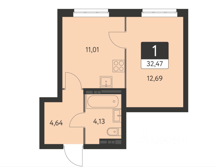 Квартира под тапочки , поэтому это отличная возможность создать интерьер по своему вкусу и под свои нужды. Имеется балкон, где можно обустроить зону отдыха. Совмещённый санузел позволит рационально использовать пространство. Площадь кухни — 4.13 кв. м, что достаточно для готовки и уютных вечеров.