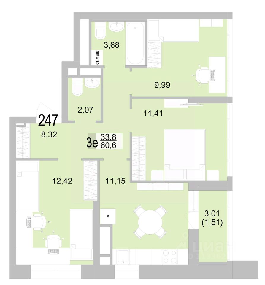 Общая площадь61,2 м2