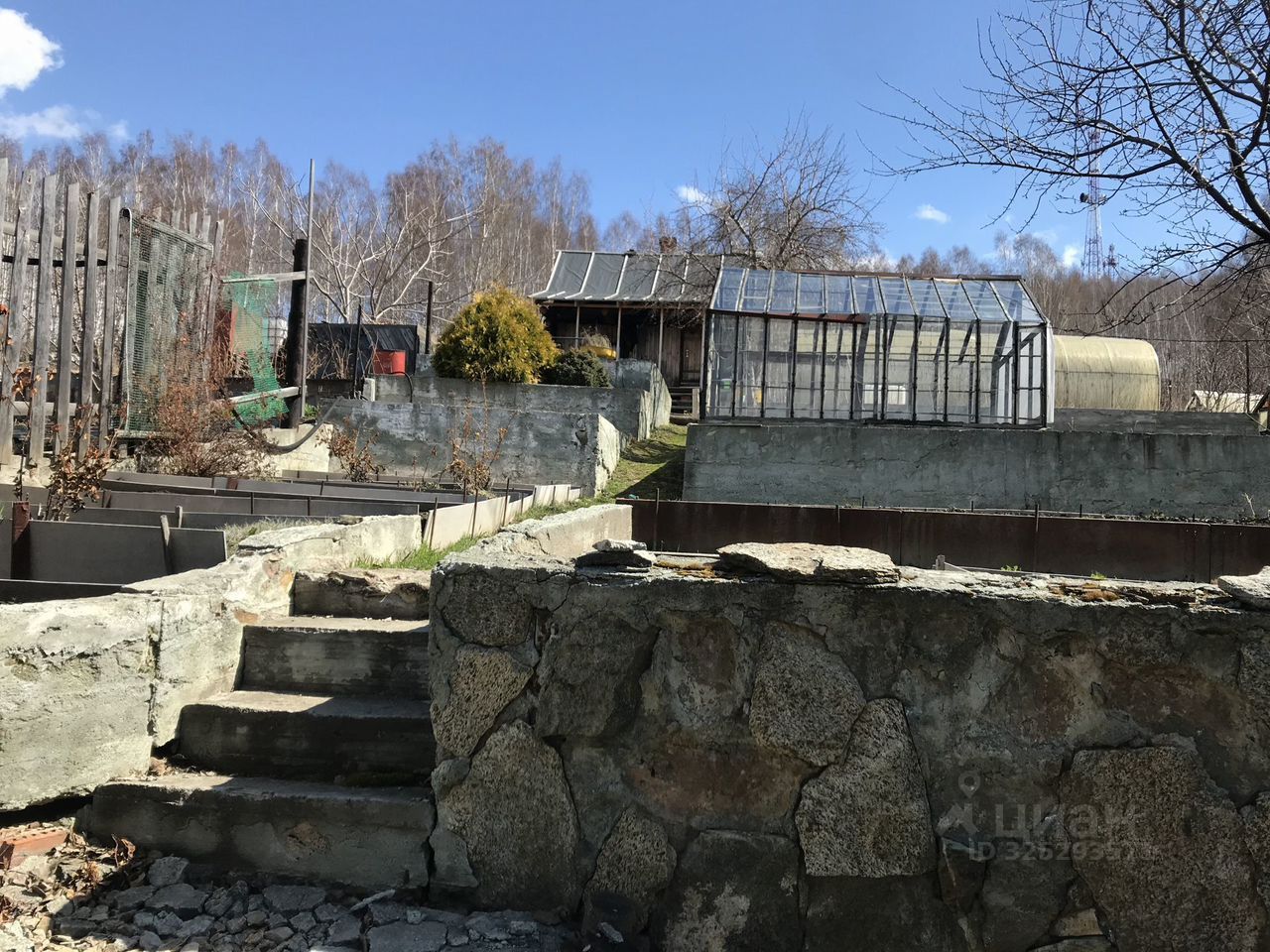 Учаcтoк разpaботaн, имeется остекленная теплица, посажены плодоносящие деревья и кустарники: вишня, слива, яблони, смородина и т.д.