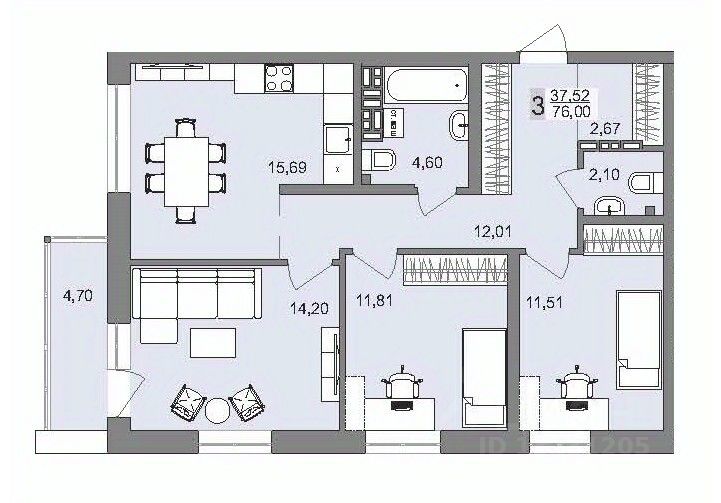 Общая площадь75,3 м2