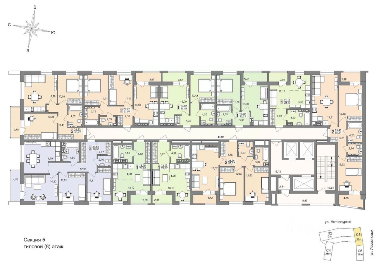 Дому присвоен адрес: ул. Металлургов, 63 Квартал расположен в районе улиц Металлургов, Лоцмановых и Отрадной. На первых этажах предусмотрены коммерческие помещения, а сами дома ''парят'' над землей.