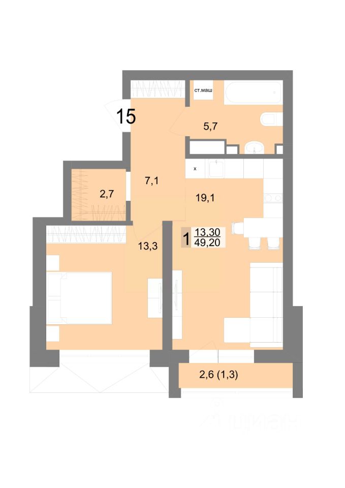 Общая площадь49,2 м2