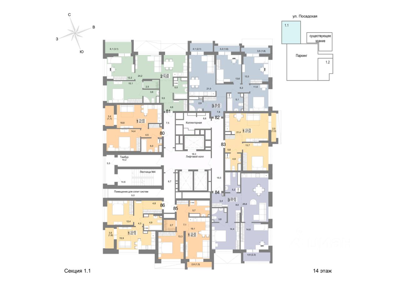 продам 1-к, Посадская, 26 стр.9 756 067 ₽