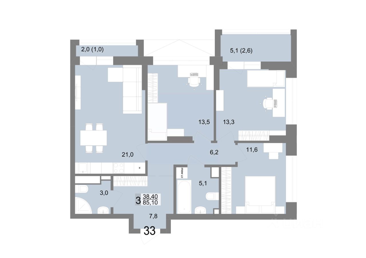 Общая площадь85,1 м2