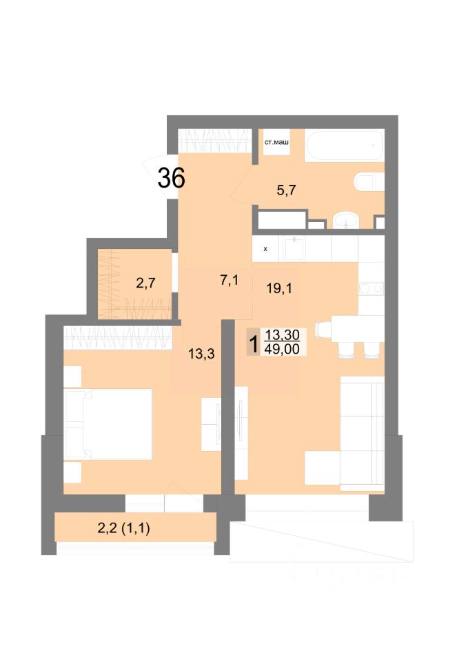 Общая площадь49 м2