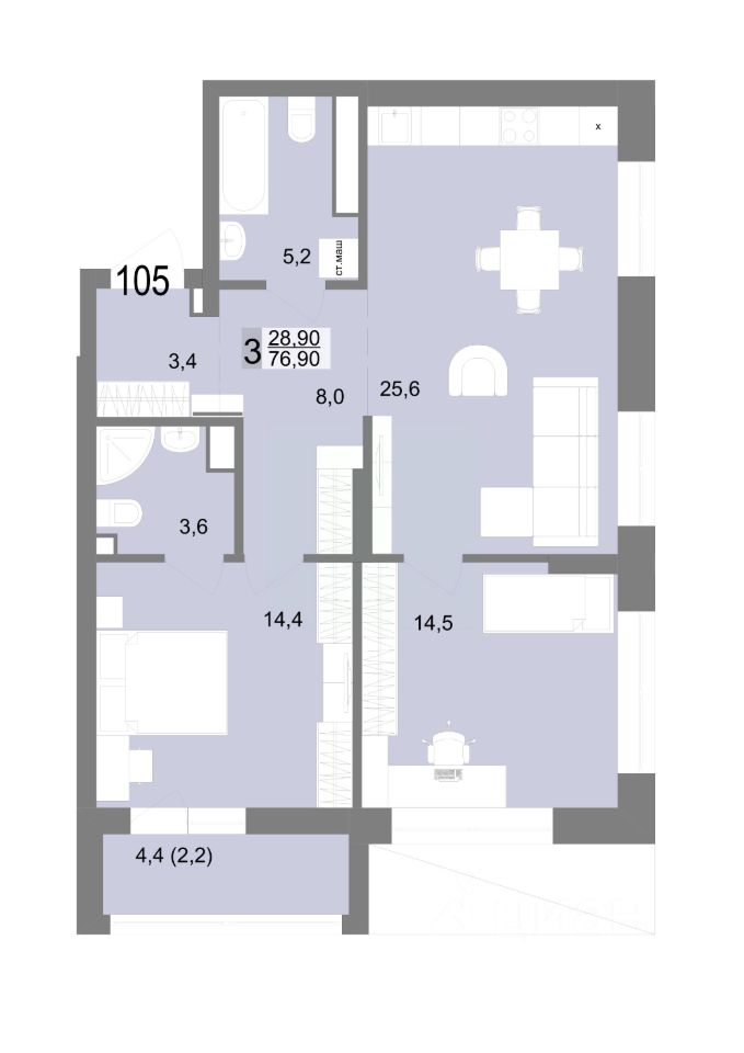 Общая площадь76,9 м2