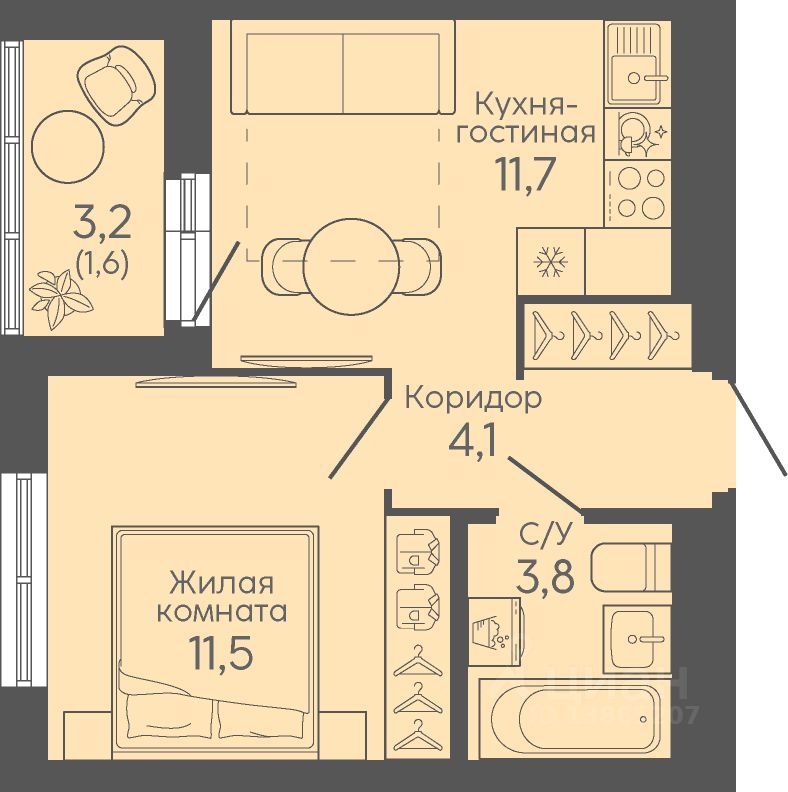 Общая площадь32,7 м2