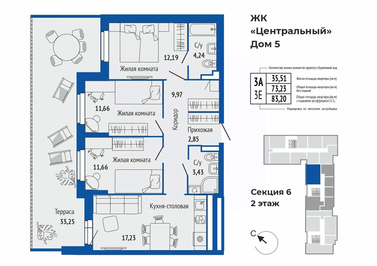 продам 3-к, Калинина, 33/5 стр.11 783 800 ₽