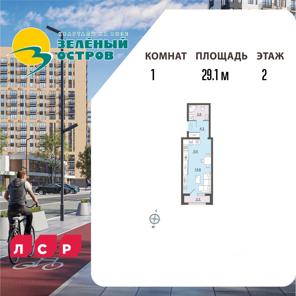 Квартира располагается на 2 этаже 25-этажного дома в ЖК Зеленый остров. Застройщик - ЛСР, сдача дома - III квартал 2027 года. Парковка автомобилей - наземная. Инфраструктура: школа, детский сад, детские площадки, спортивные площадки, места для отдыха, супермаркет, коммерческие объекты.