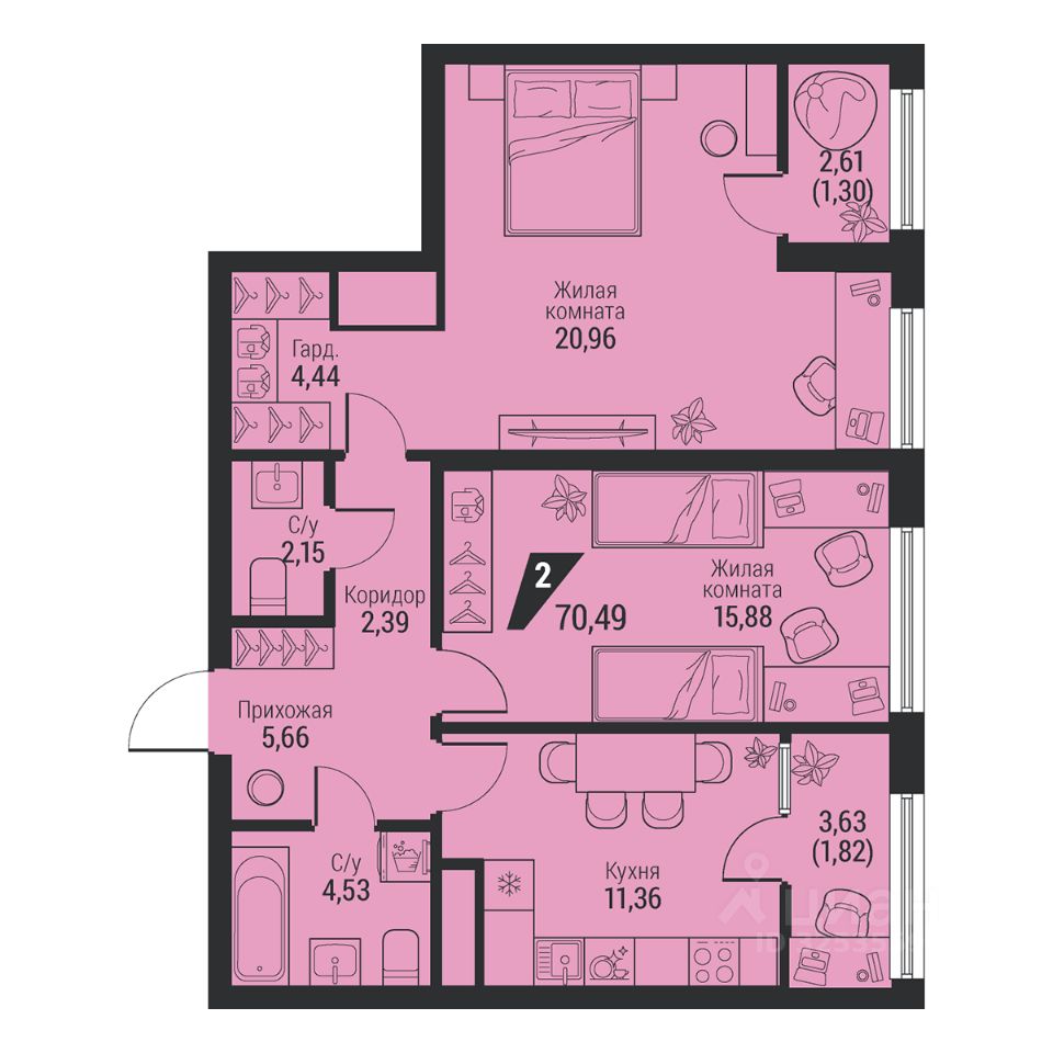 Общая площадь70,49 м2