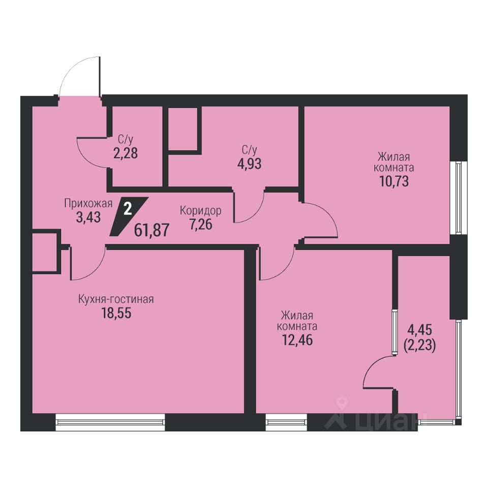 Общая площадь61,87 м2