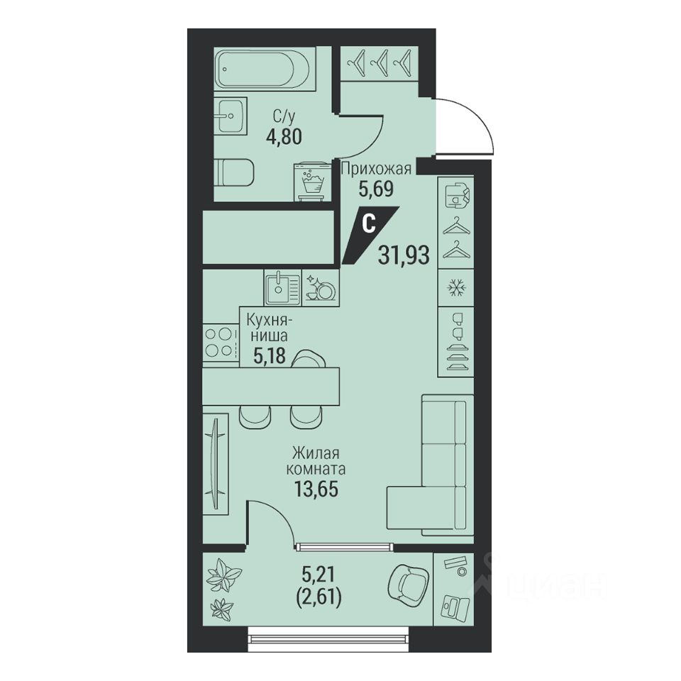 Общая площадь31,93 м2