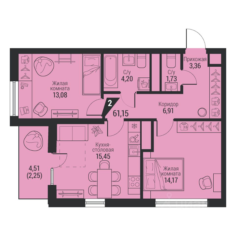 Общая площадь61,15 м2