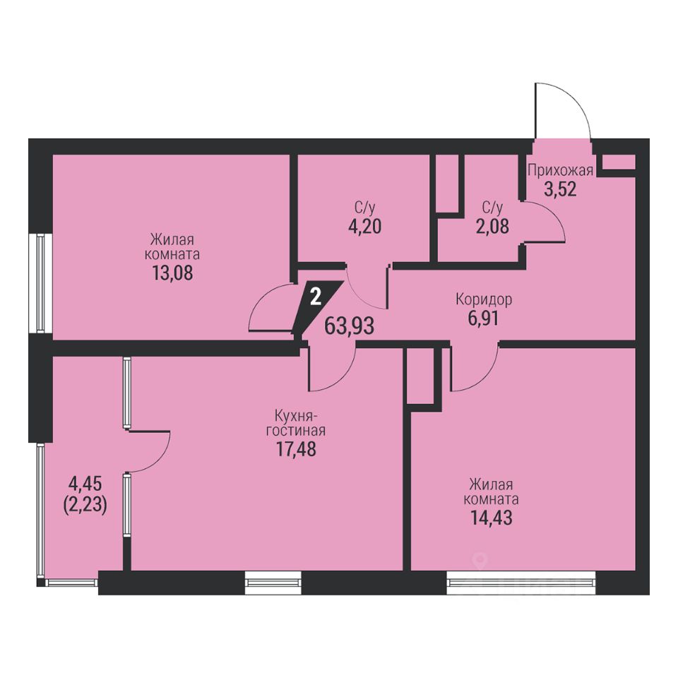 Общая площадь63,93 м2