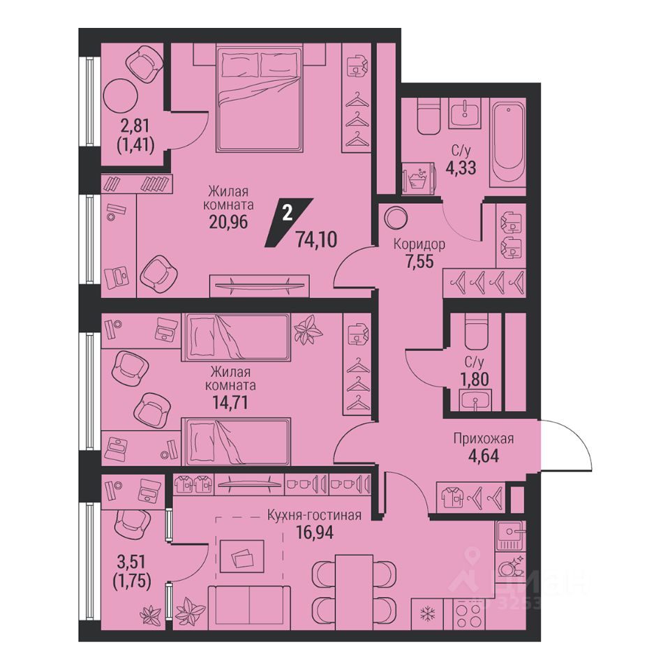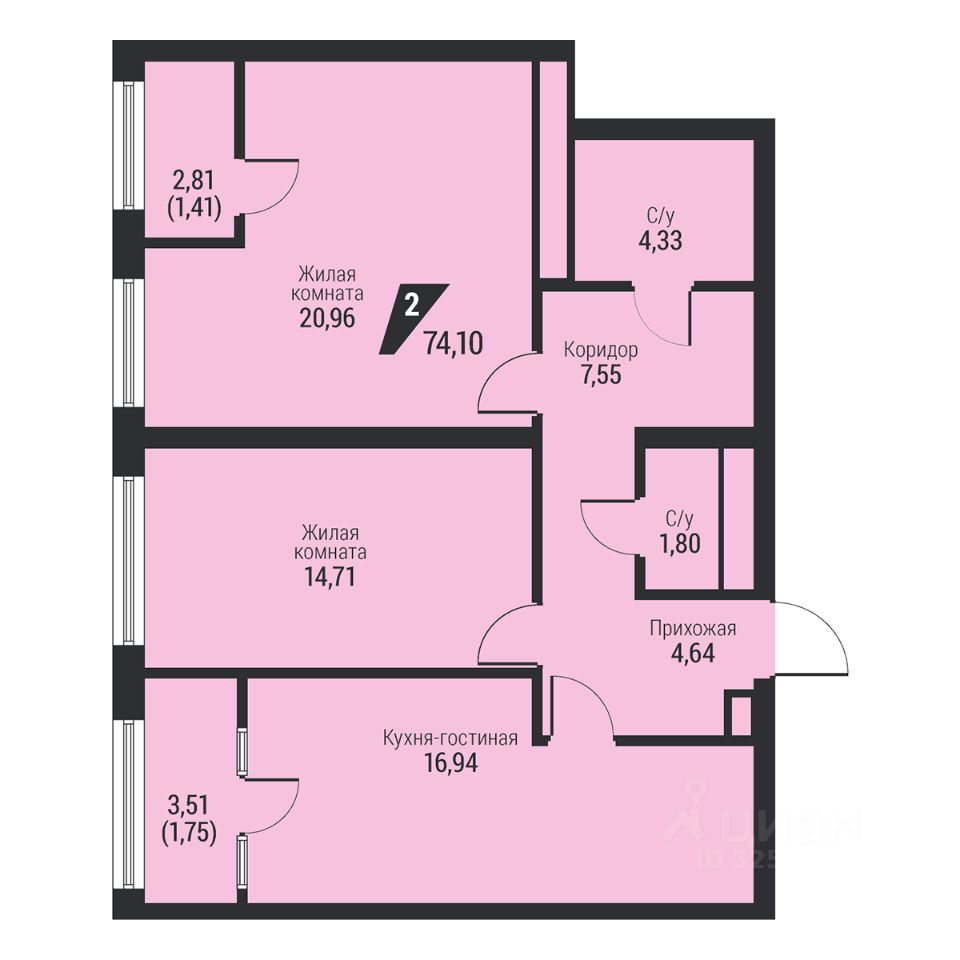 Общая площадь74,1 м2
