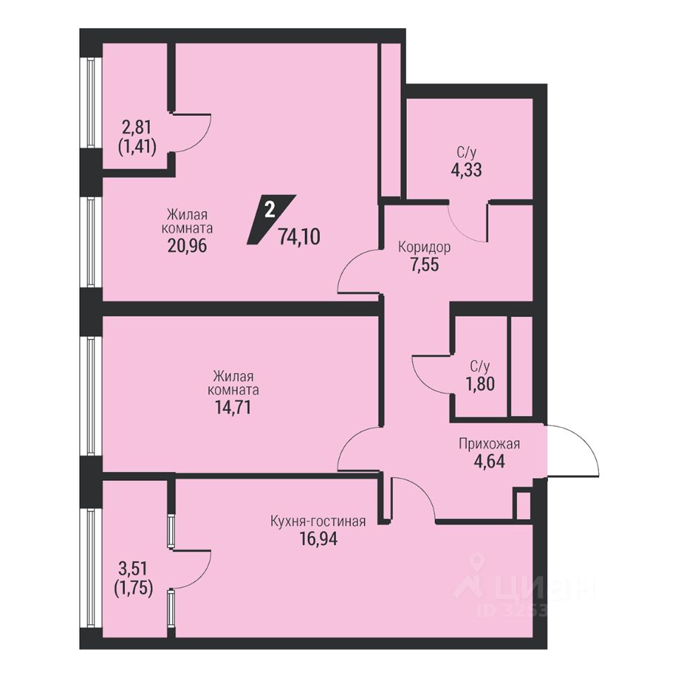 Общая площадь74,1 м2