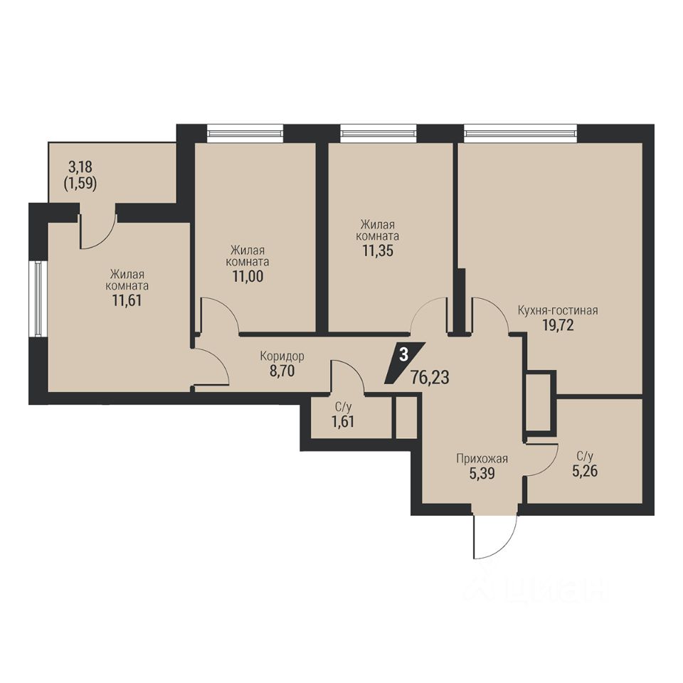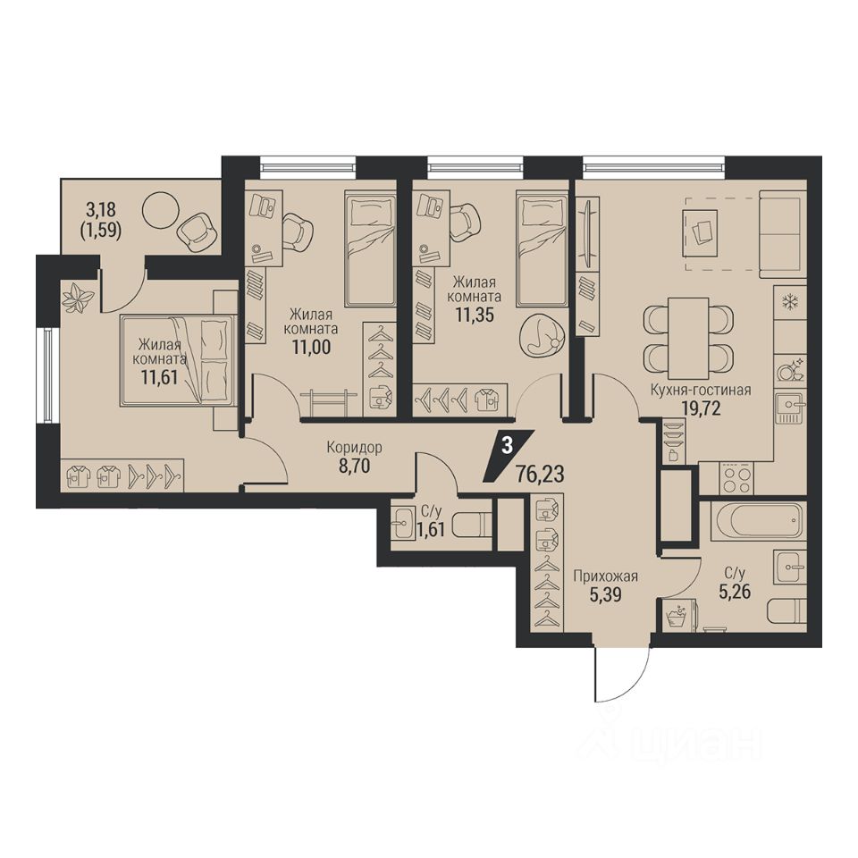Общая площадь76,23 м2