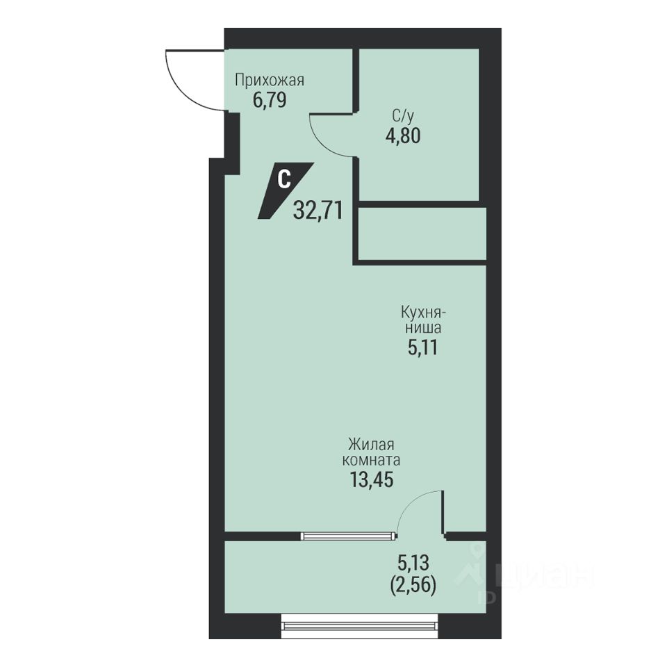 Общая площадь32,71 м2