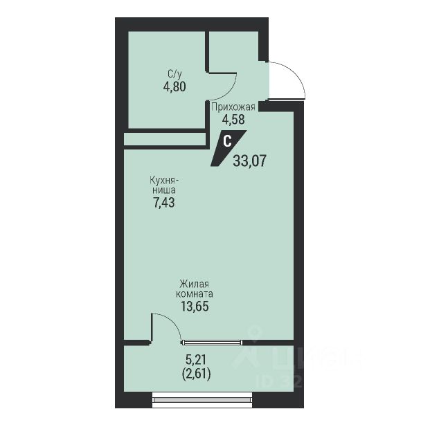 Общая площадь33,07 м2