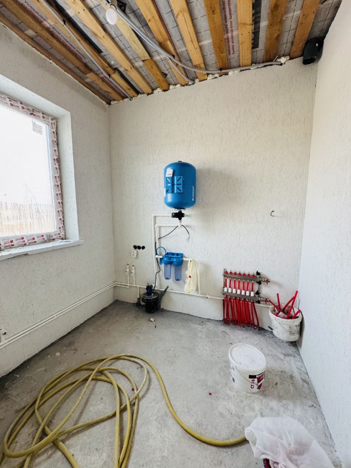 Стены из газоблока с утеплением минватой 100 мм, Кровля - металлочерепица, утепление крыши 200 мм, Собственная скважина глубиной, канализация - септик. Отопление теплые полы водяные. За счёт электрокотла. Оборудование электрокотел. Отделка под чистовую + в стоимость входит отделка санузлов кафелем и плитка на полу в зоне котельной и прихожей. .