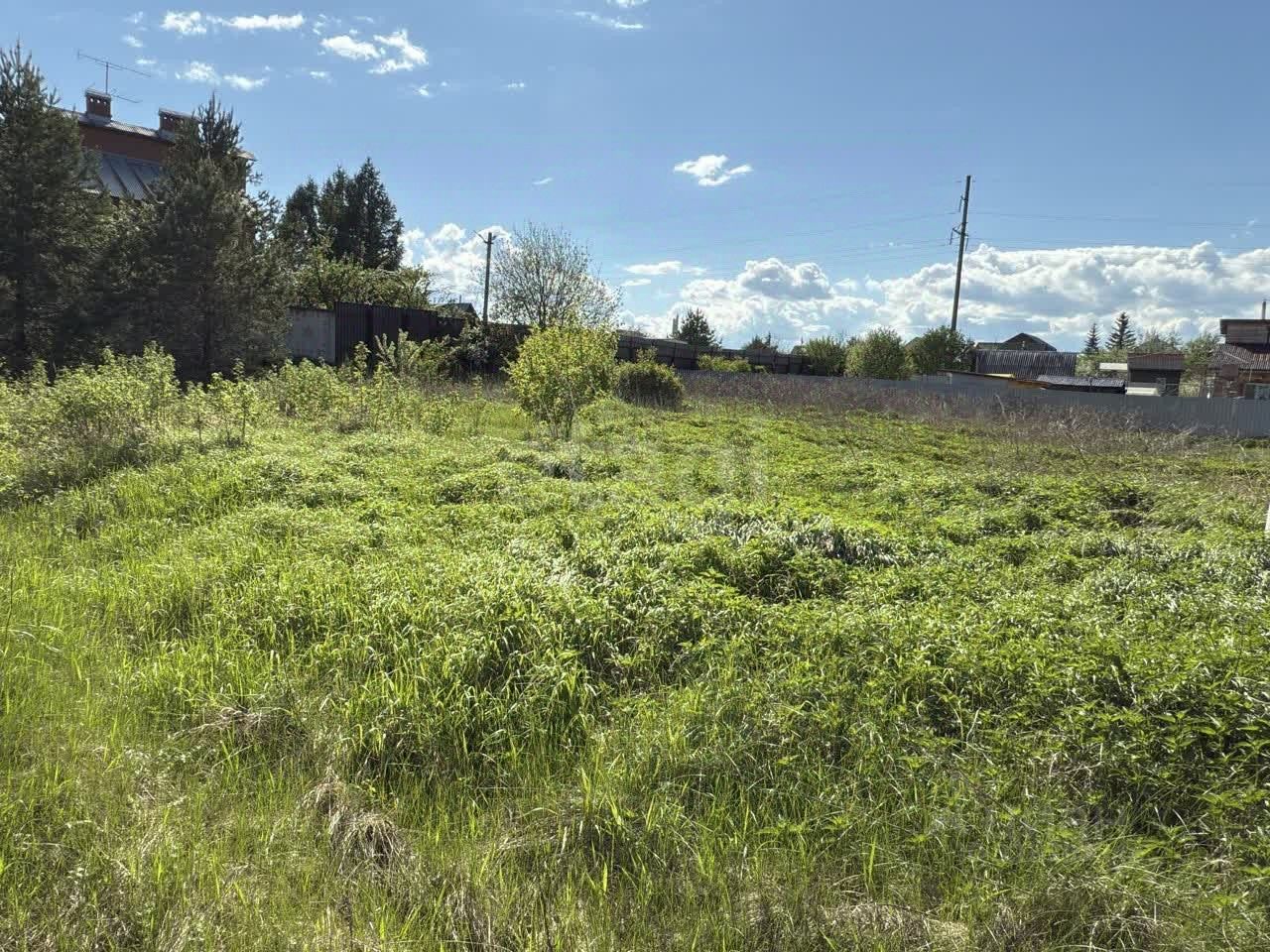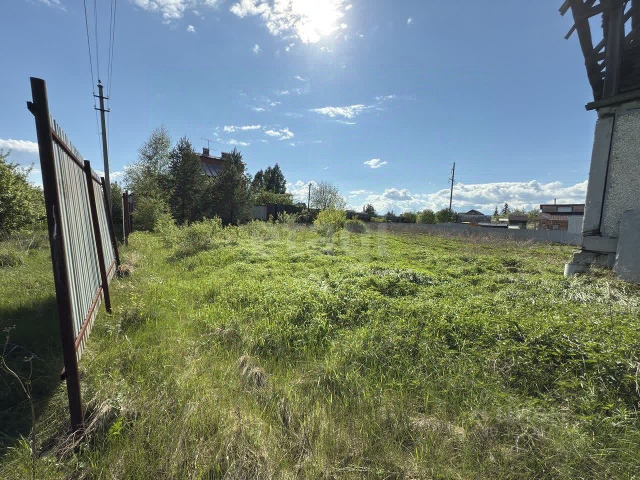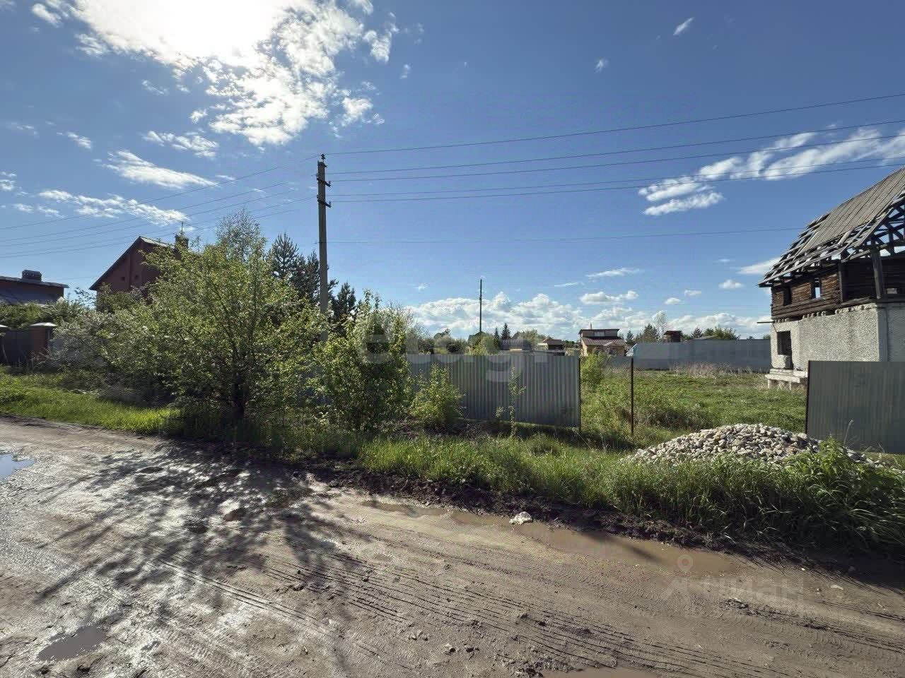Установлен частично забор, возле участка есть столб с электричеством.