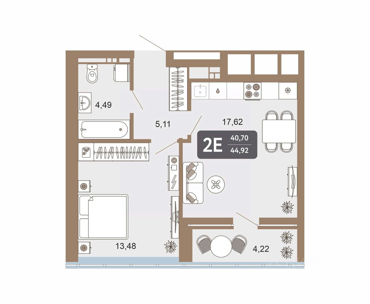 Общая площадь44,86 м2
