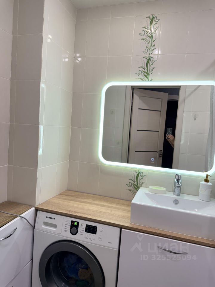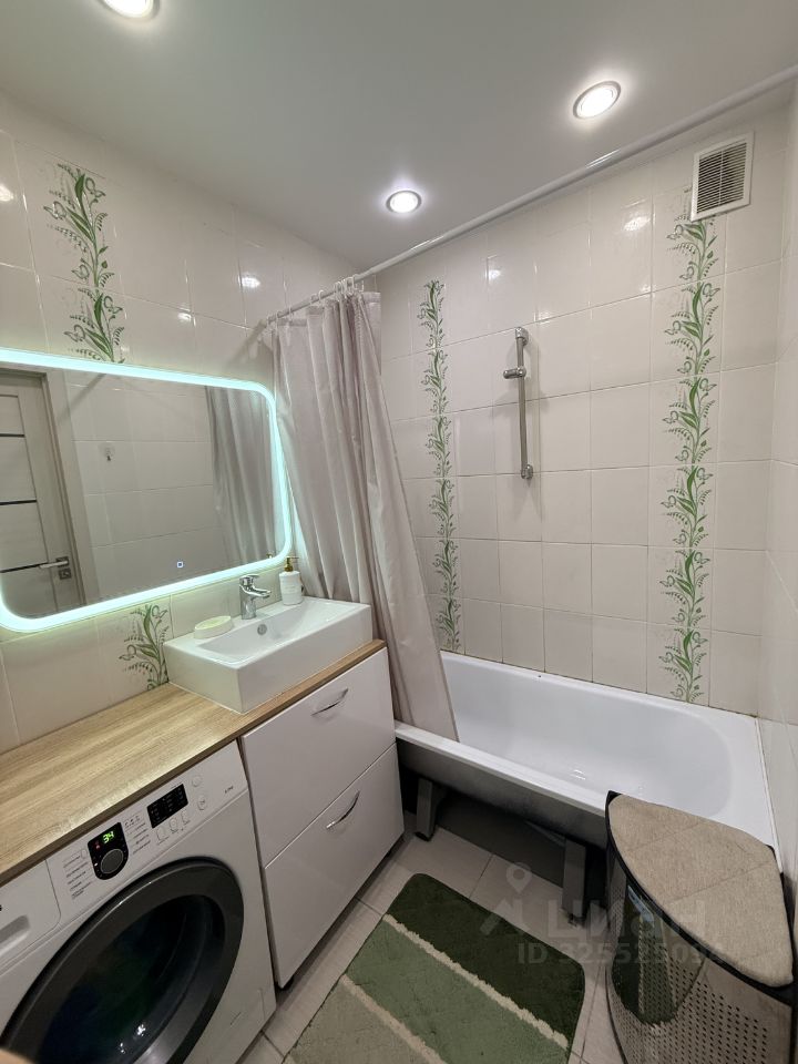 В ванной встроенные шкафы для хранения.