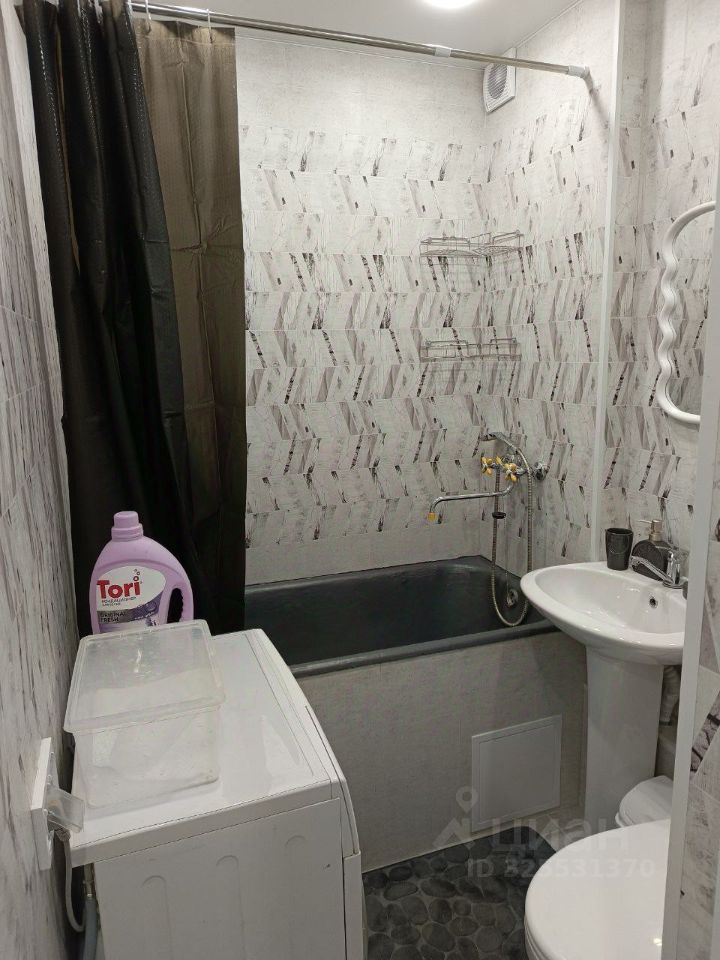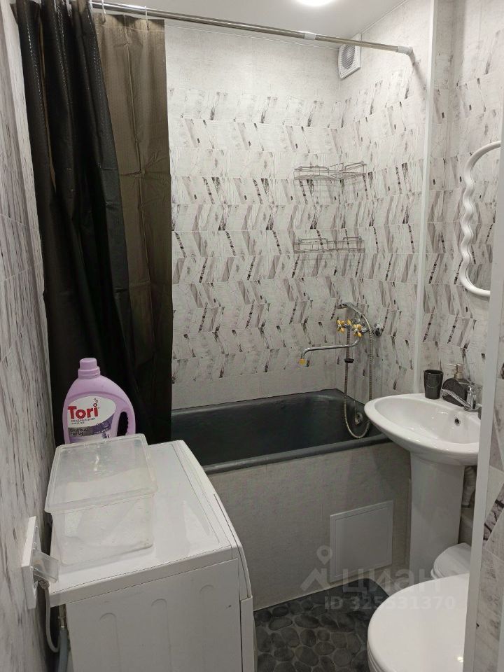 Из техники в квартире имеется смарт-телевизор, микроволновка, чайник, стиральная машина. Из мебели — шкаф для одежды, книжная полка, рабочий стол с креслом, комод, двухместный складной диван и оборудованная кухня.