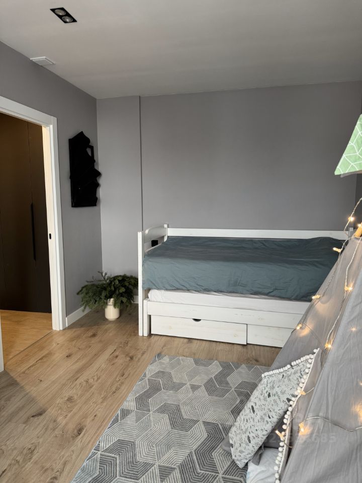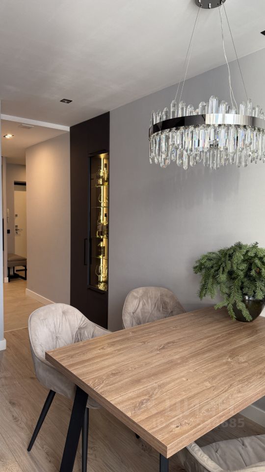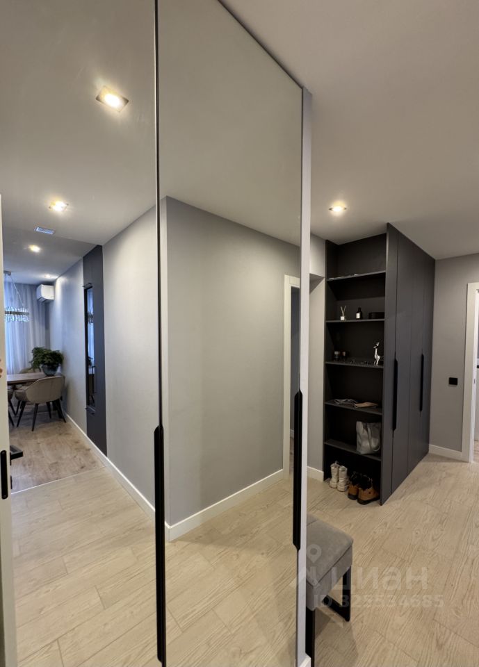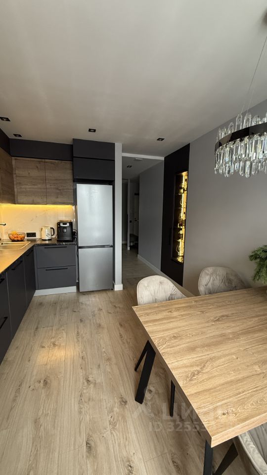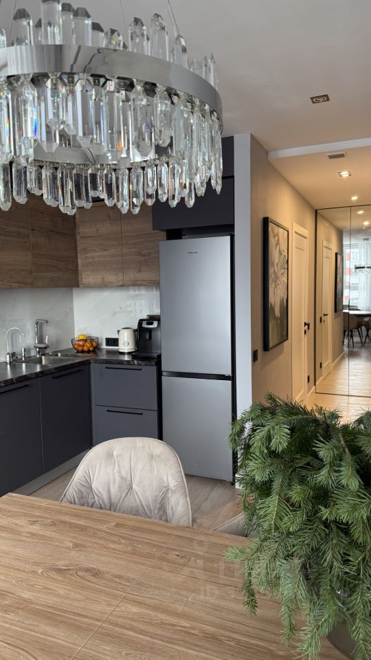 Отделка выполнена из качественных материалов по индивидуальному проекту. Встроенная мебель изготовлена на заказ с использованием немецкой фурнитуры. Техника: установлена встроенная посудомоечная машина, микроволновая печь, измельчитель для раковины, водонагреватель. Перечисленная мебель и техника остаются будущему владельцу.