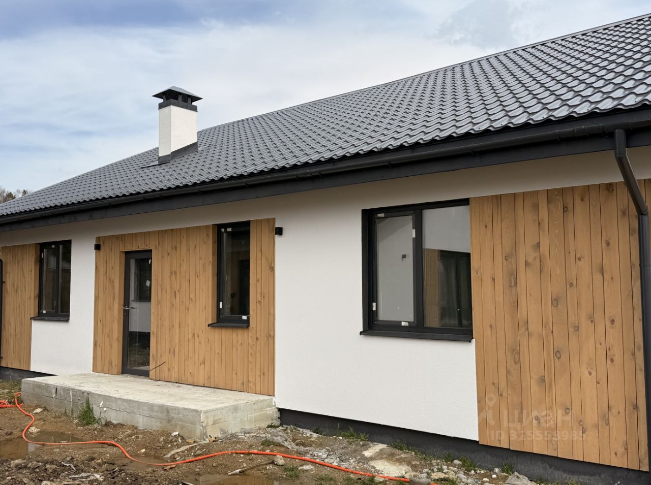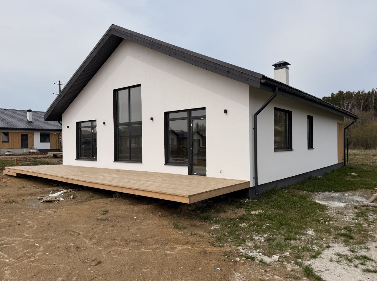Архитектура и атмосфера Главная особенность проекта — второй свет в гостиной: • потолки до 5 метров • большие панорамные окна • максимум естественного света • ощущение воздуха и объёма, которое невозможно передать на фото Дом выглядит современно и статусно, без перегруженных решений. Двускатная крыша, чистая геометрия и фасады с отделкой из натурального дерева делают его элегантным и визуально дорогим.