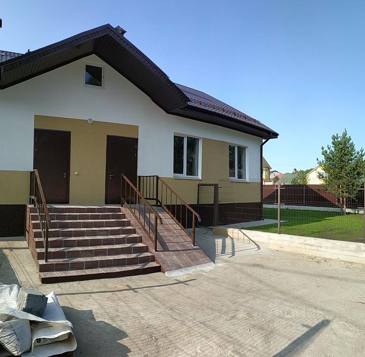 Участок и прилегающая территория полностью. благоустроены. Напротив дома сооружена огражденная стоянка на 12!!! а/м. Отвечу на Ваши вопросы. СОБСТВЕННИК.