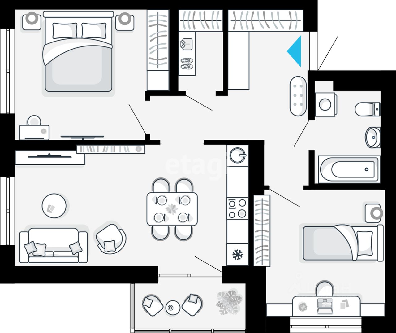 СРОЧНО! Ключи получаем до конца февраля! В продаже 2х комнатная квартира в Первом доме в ЖК ''Небосклоны''. Самой светлой и удобной планировки с видом на Уктусские горы - окна на Ю-В и Ю-З, на комфортном 5м этаже. Кухня-гостиная 19 м2 с лоджией и окном, две спальни 13 и 11 м2, гардеробная и просторный санузел. Отделка предчистовая. В ЖК запланированы бизнес-холлы с 5тиметровыми потолками, входные группы в натуральных природных оттенках, высокоскоростные бесшумные лифты со спуском в паркинг, колясочные, двор-парк с ландшафтным дизайном. Учёт и передача данных потребления воды, электричества и тепла будет автоматизирован. Квартал ''Небосклоны'' расположен на Уктусе, напротив склона Уктусских гор.
