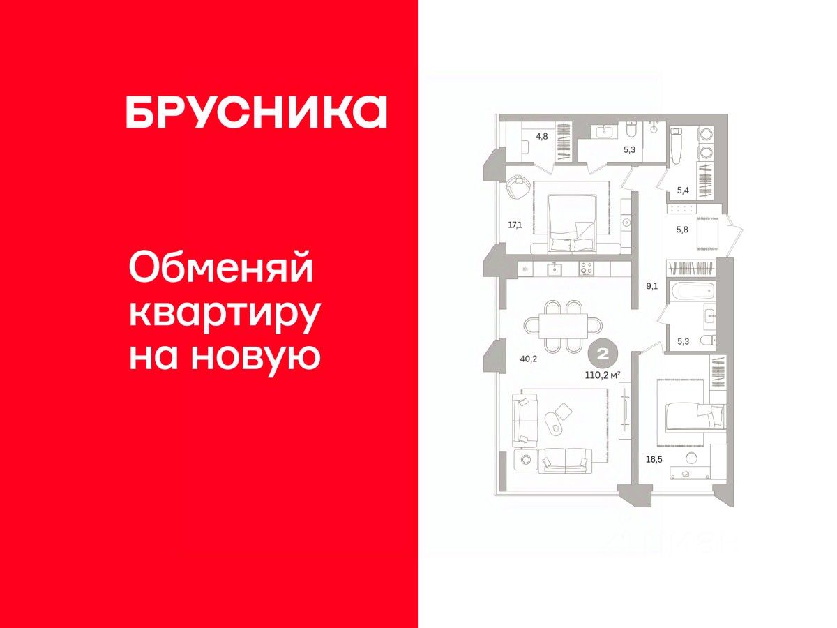 Просторная двухкомнатная квартира с предчистовой отделкой в ЖК ''Гоголя 21'' на 5 этаже. Общая площадь: 110.15 кв.м., жилая: 33.6 кв.м., площадь просторной кухни-столовой: 40.2 кв.м. Угловая квартира, очень светлая, естественная вентиляция при открытии окон. В квартире два совмещенных санузла. Высота потолков 2.98 м.